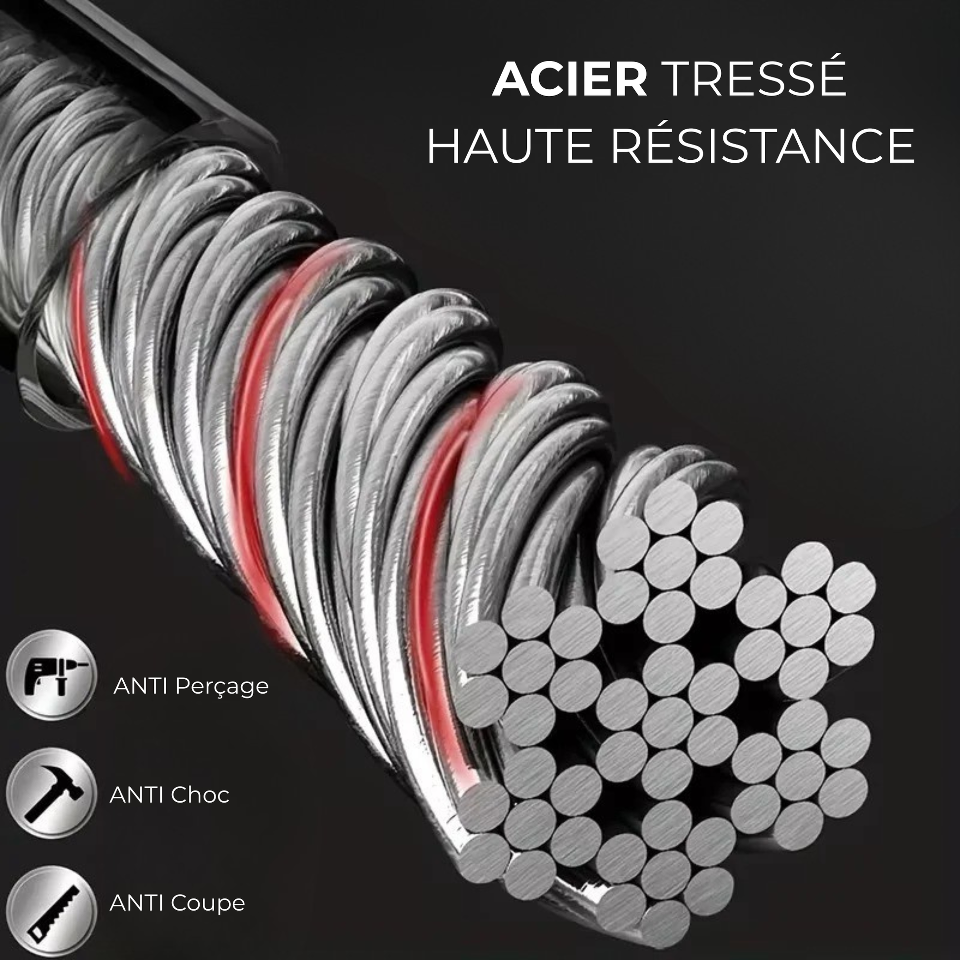 🔒 Câble en acier tressé haute résistance (5 mm)